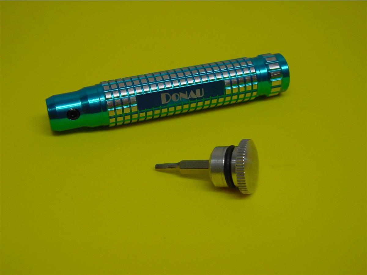 Der Kopf des Griffes ist mit dem Schlüssel zum Wechseln der Feilen ausgestattet.